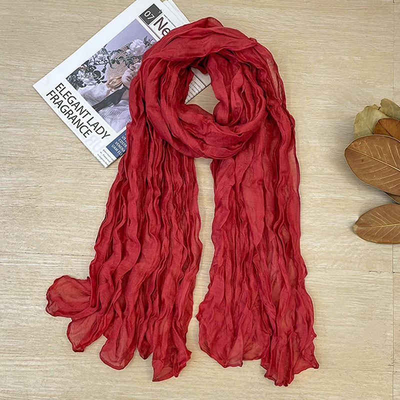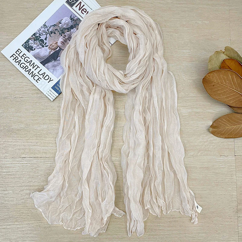 1Pieces Korean Style Cotton Linen Folded Women's Scarf Thin Pure Color Simple Match Long Shoulder Mountaineering Scarf
