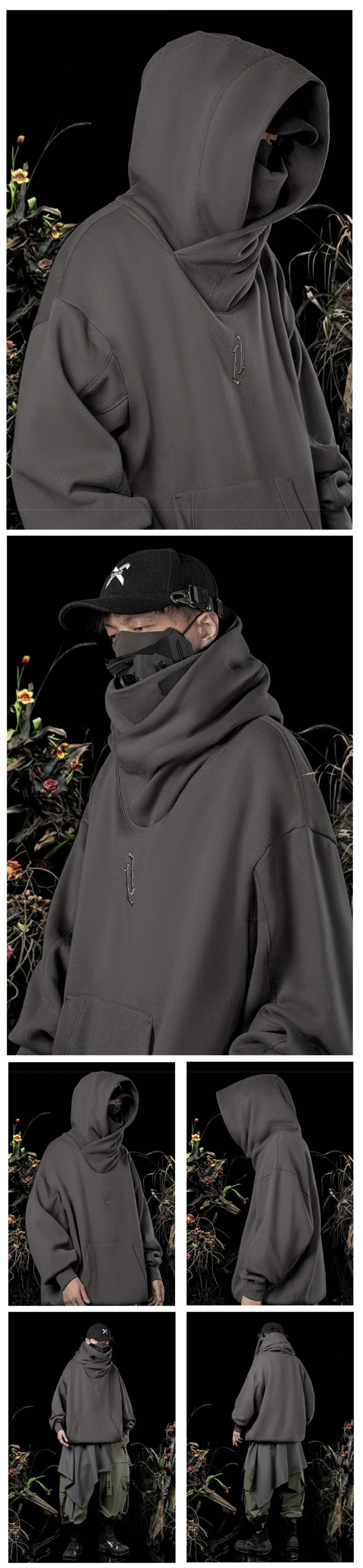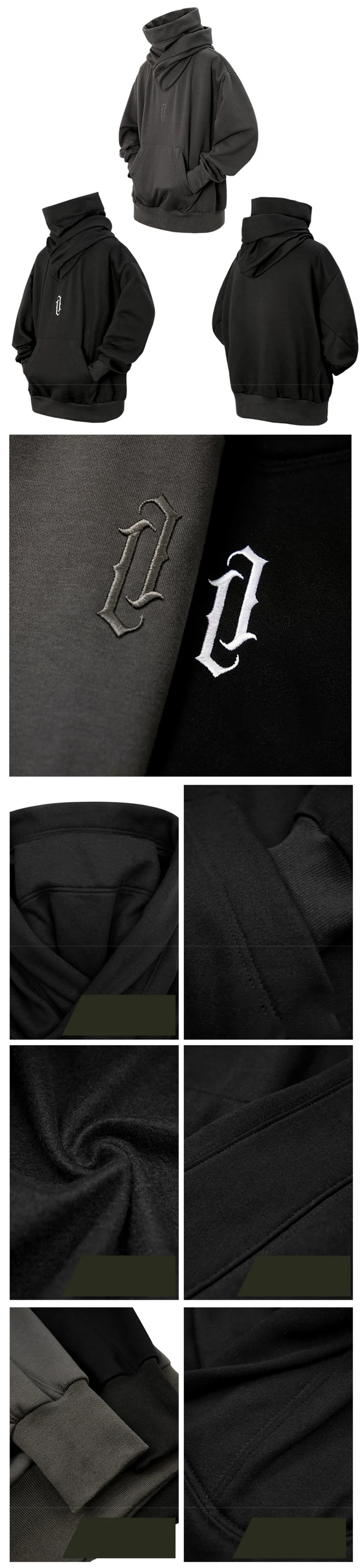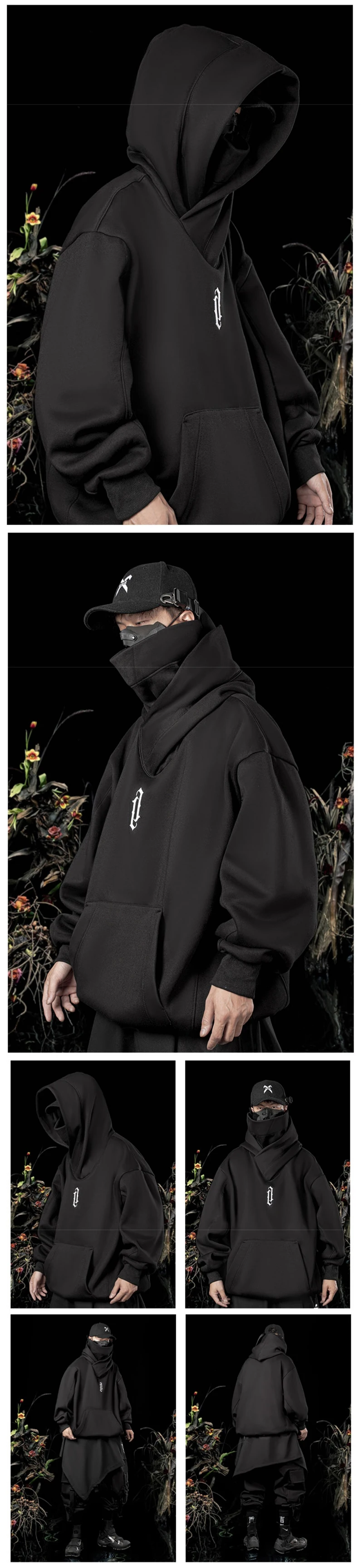 Autumn Embroidery Turtleneck Men's Hooded Sweatshirt Japanese Ninja Oversized Hoodies Hip Hop Fleece Pocket Streetwear Y2K Hoody