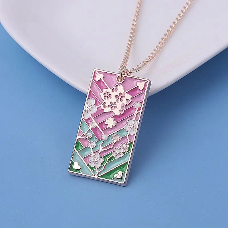 Demon Slayer Anime Peripheral Kochou Shinobu Metal Necklace Pendant Fashion Personalized Accessories Cosplay Niche Gifts