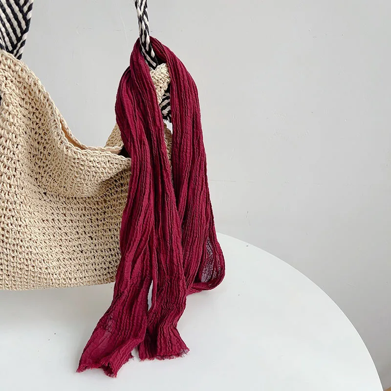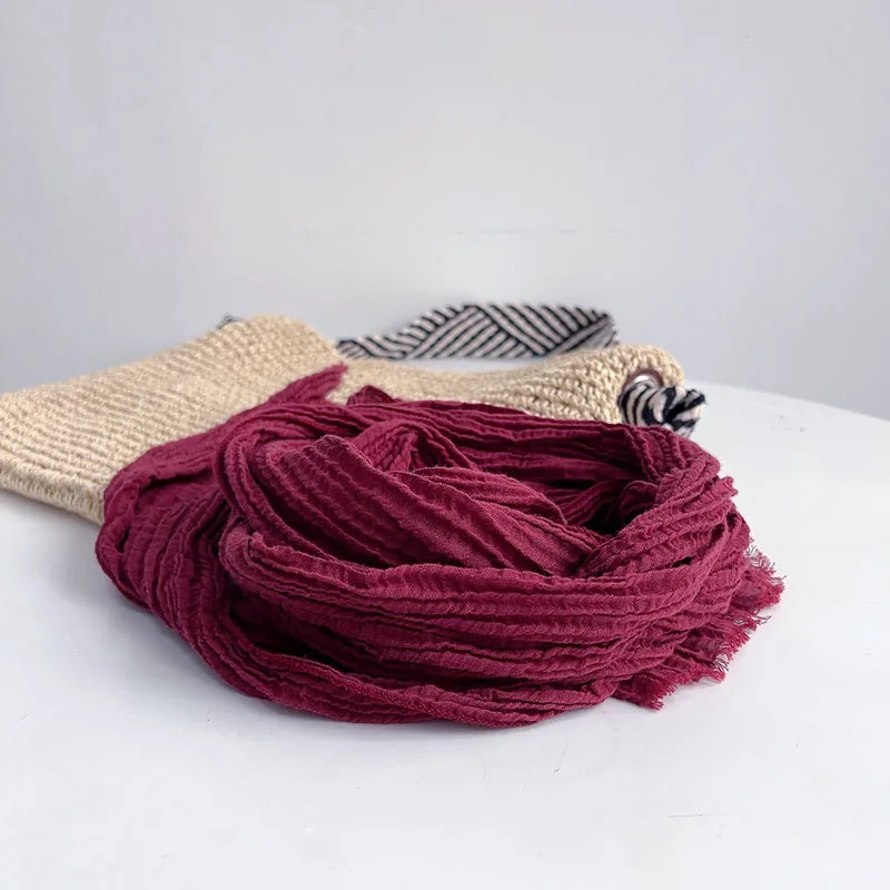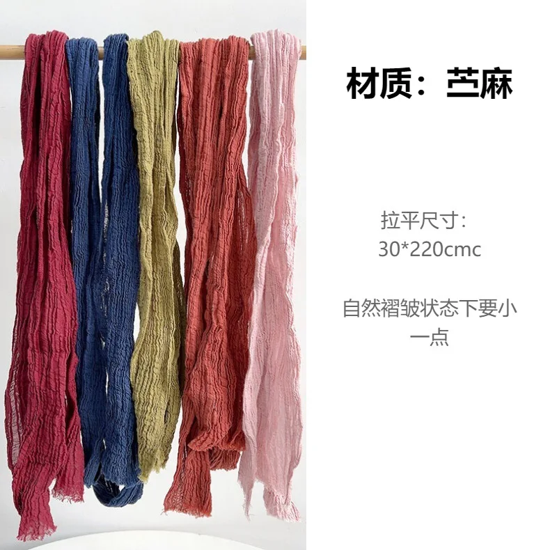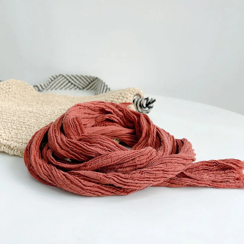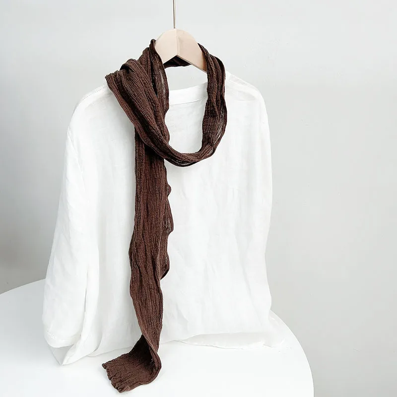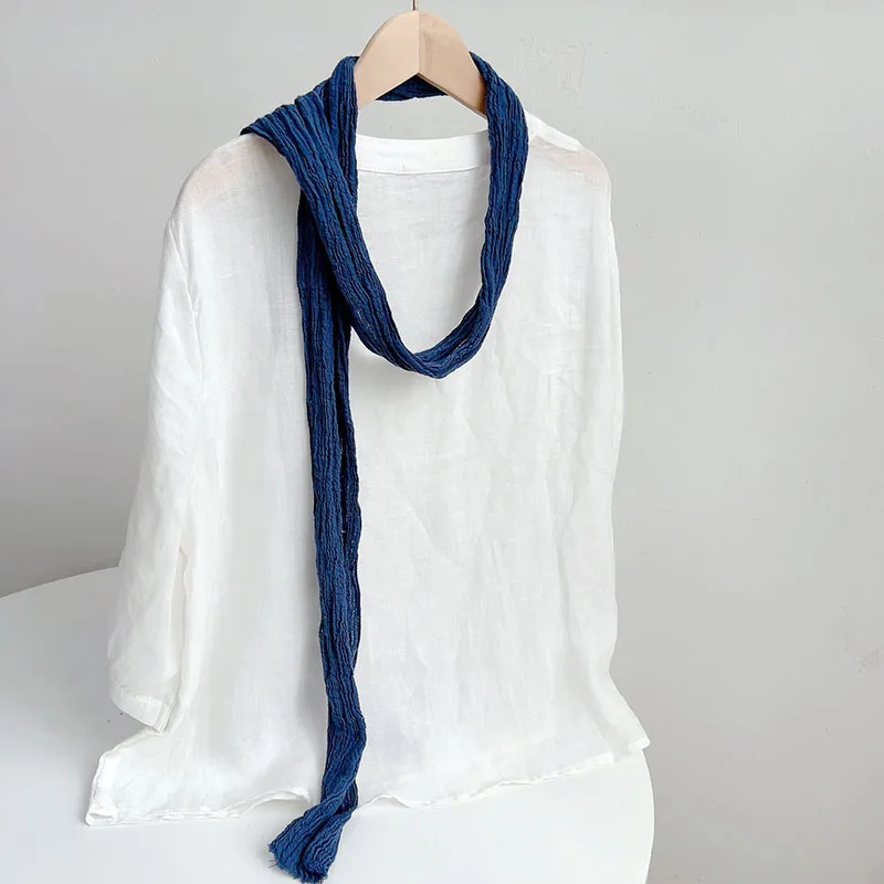 Retro pleated ramie scarf slender narrow and long scarf Japanese forest women's versatile elongated neck protection scarf